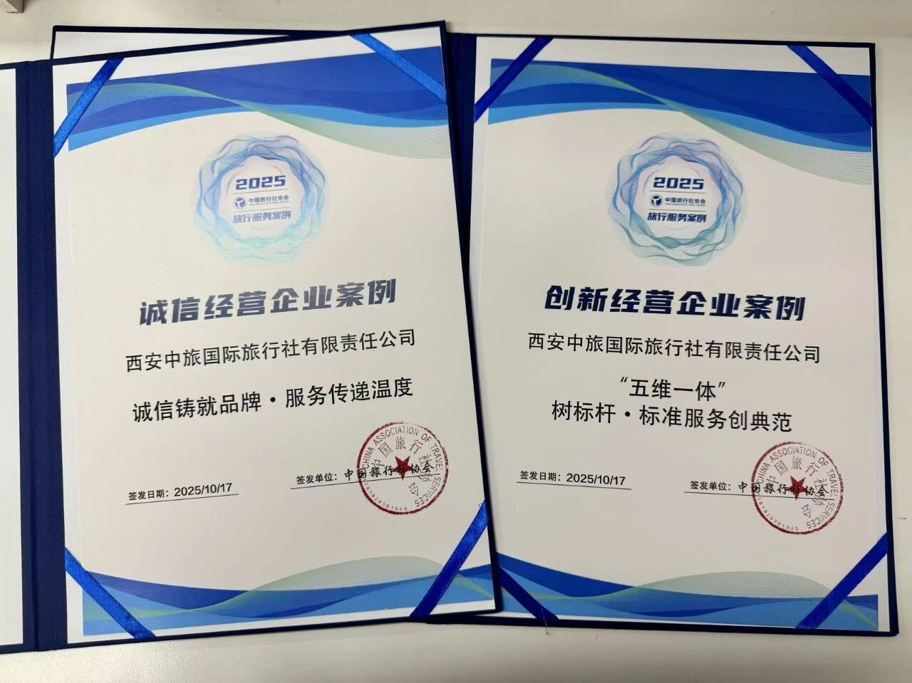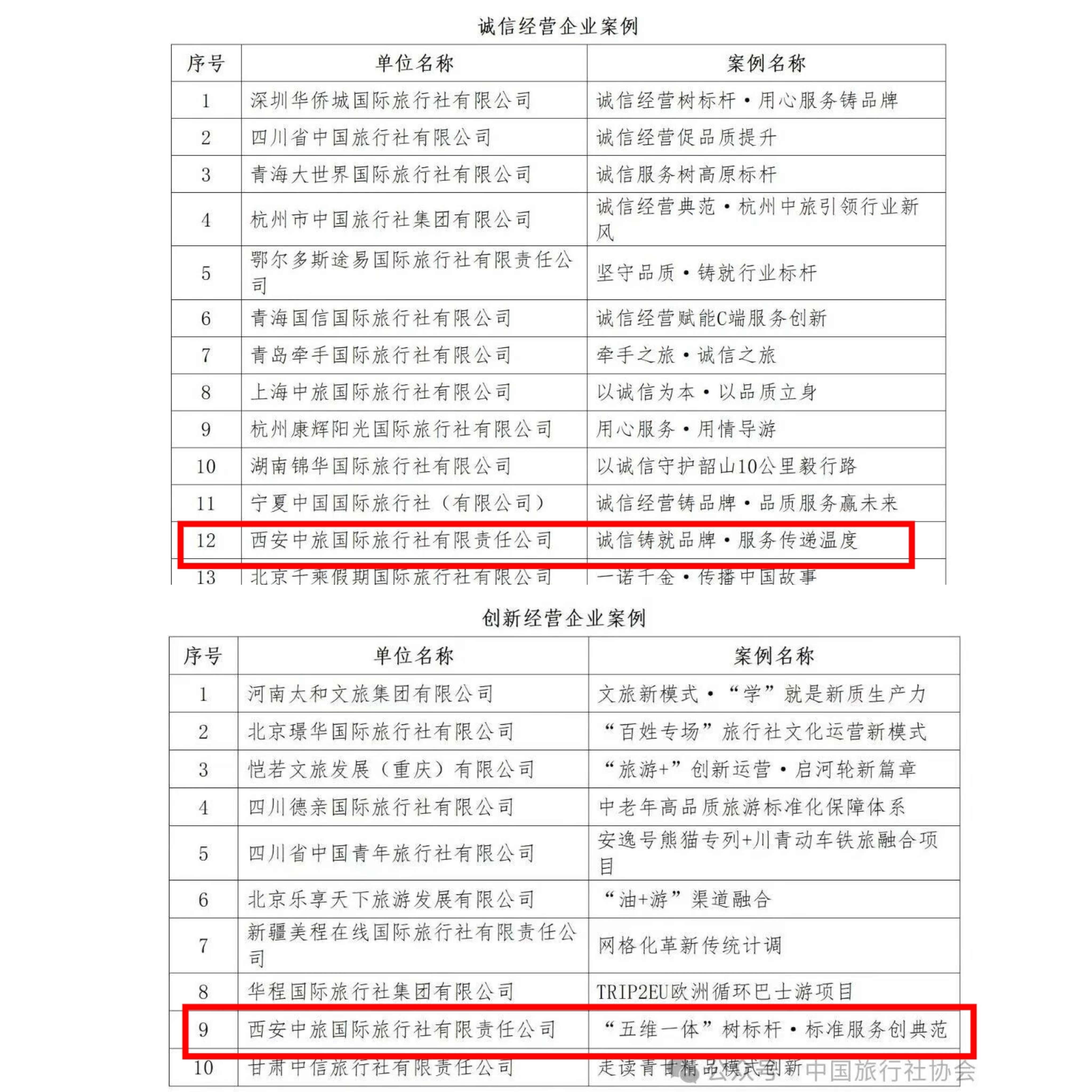 近日,“第八屆中國旅行社協(xié)會旅行服務(wù)案例榜單”正式揭榜,西旅股份旗下西安中旅創(chuàng)建的「誠信鑄就品牌·服務(wù)傳遞溫度」和「“五維一體”樹標(biāo)桿·標(biāo)準(zhǔn)化服務(wù)體系」兩個(gè)案例,分別斬獲“誠信經(jīng)營企業(yè)案例”和“創(chuàng)新經(jīng)營企業(yè)案例”榮譽(yù),彰顯了西安中旅在“誠信經(jīng)營”和“標(biāo)準(zhǔn)化服務(wù)”方面的優(yōu)勢和廣闊前景!