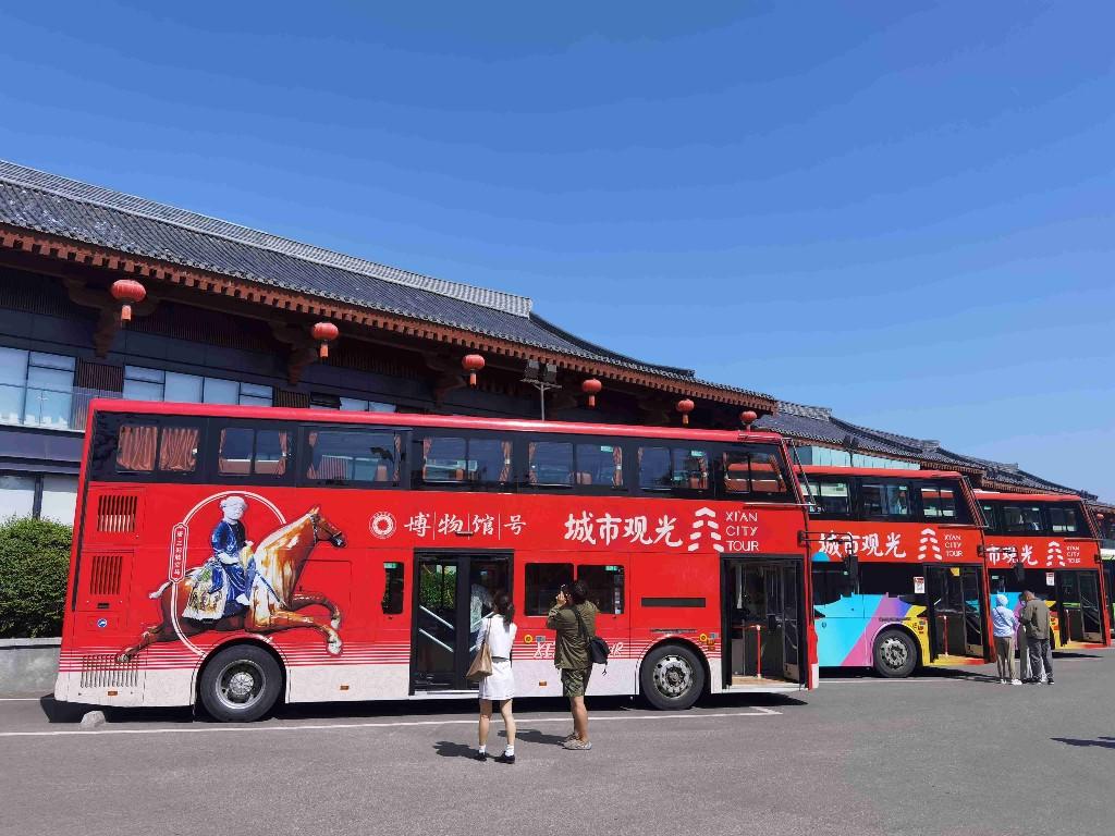 春風(fēng)得意馬蹄疾,一日看盡長(zhǎng)安花。西安城市觀光車“常來長(zhǎng)安”“曲江風(fēng)華”“長(zhǎng)安之夜”等6條城市觀光線路,串起大雁塔、曲江池、陜西歷史博物館、小雁塔、永寧門、碑林博物館、鐘樓、大明宮國(guó)家遺址公園等40余家著名景區(qū)、博物館、時(shí)尚街區(qū)的“點(diǎn)”和西安歷史文化脈絡(luò)的“線”,精彩展現(xiàn)千年古都高品質(zhì)旅游體驗(yàn)的“面”。一輛輛“秦腔主題觀光車”“唐詩(shī)主題觀光車”“博物館主題觀光車”“喜劇巴士主題觀光車”穿城而過,觀光空間成為文旅場(chǎng)景,帶著游客沉浸式感受千年古都的文化魅力。