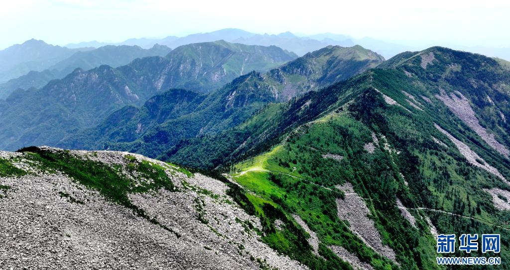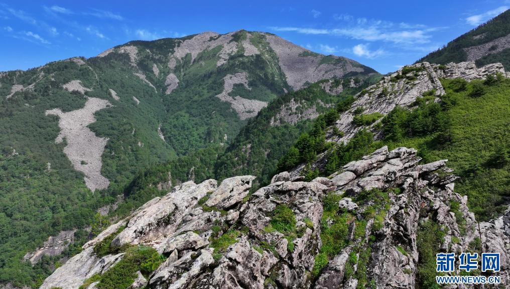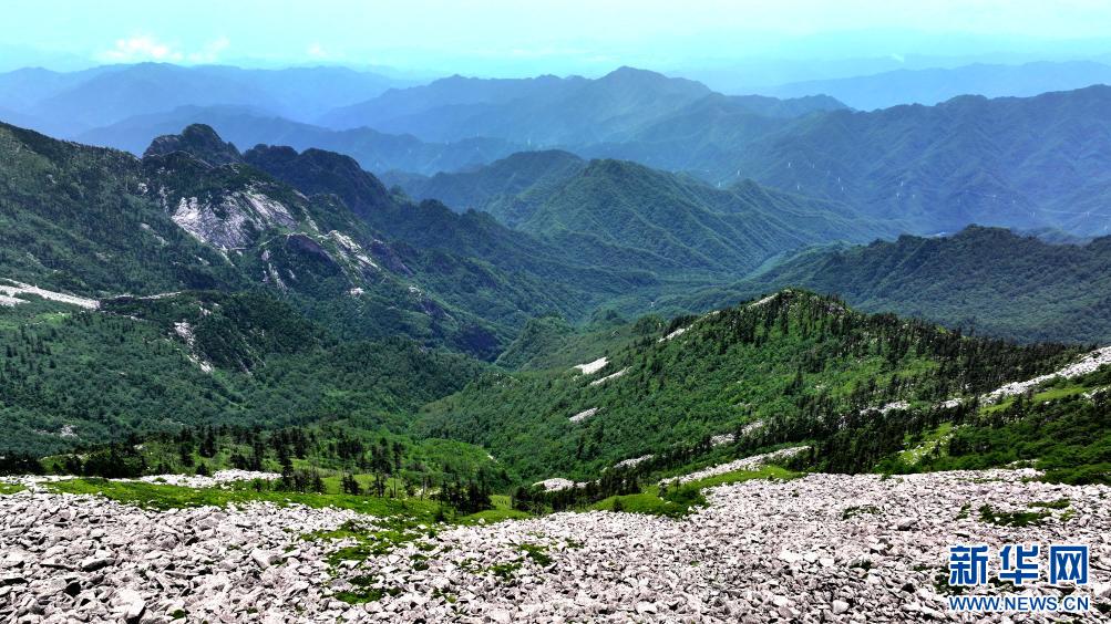 陜西朱雀國家森林公園內石海及高山草甸景色(7月21日攝,無人機照片)。