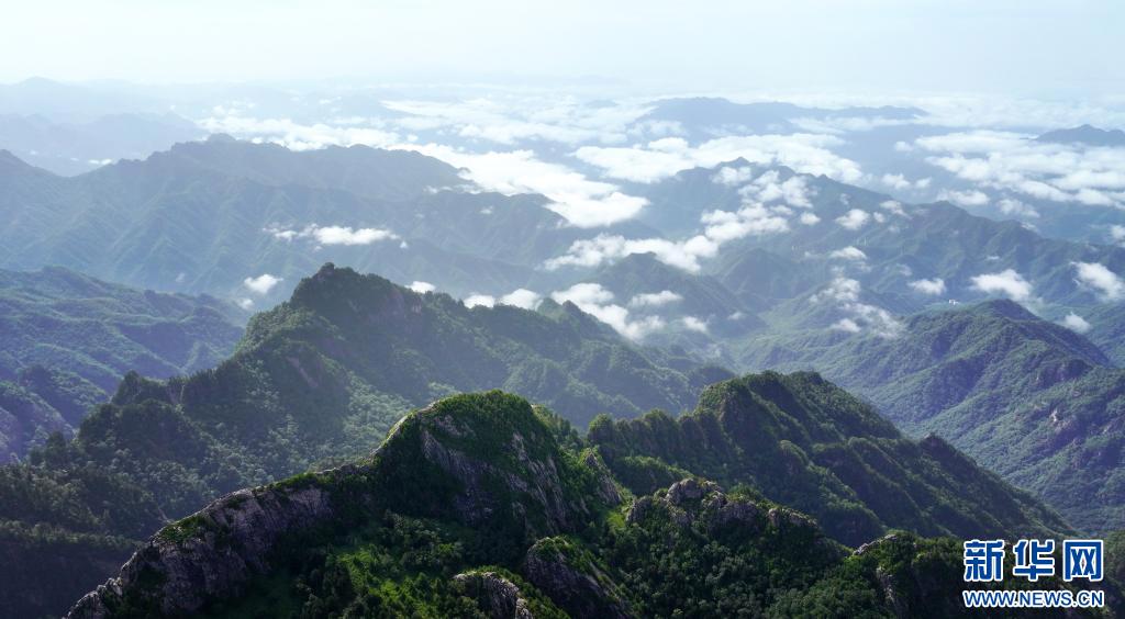 從陜西朱雀國家森林公園眺望秦嶺云海(7月21日攝,無人機照片)。