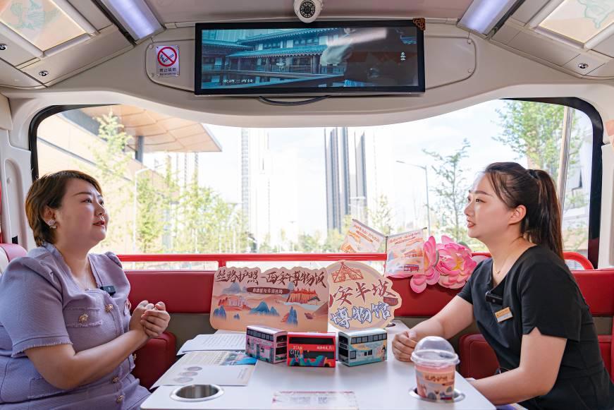 “護(hù)照”發(fā)布后,嘉賓們又登上西安城市觀光車“博物館號(hào)”,體驗(yàn)充滿文化氣息的觀光巴士。隨著車輛的啟動(dòng),一場獨(dú)特的“博物館之旅”也隨之開啟。每到一站博物館,就有一位金牌講解員上車,與大家分享歷史文化,講述文物故事。穿梭在各具特色的博物館與古韻城市風(fēng)貌中,瑰麗奇絕的歷史畫卷逐漸展開。