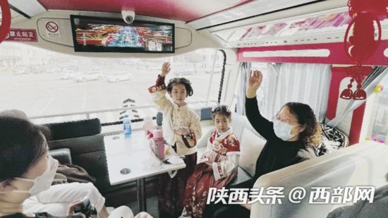 燈火暖長(zhǎng)安,龍啟中國(guó)年。新春佳節(jié),西安特推出龍年主題城市觀光車(chē),車(chē)內(nèi)張燈結(jié)彩,春節(jié)的氛圍感十足,市民乘坐觀光車(chē)即可一站式賞大唐風(fēng)華,看西安街頭花燈璀璨。
