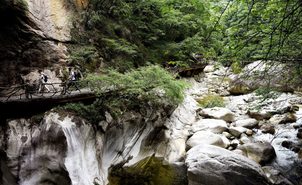 太平國家森林公園位于陜西西安鄠邑區(qū)太平峪內(nèi),地處秦嶺終南山段,海拔880米-3000米之間。太平國家森林公園區(qū)域內(nèi)高差懸殊、峭壁林立、峰巒疊嶂、溝谷連綿,多瀑布、急流和險灘,形成了豐富奇妙的山水自然景觀。